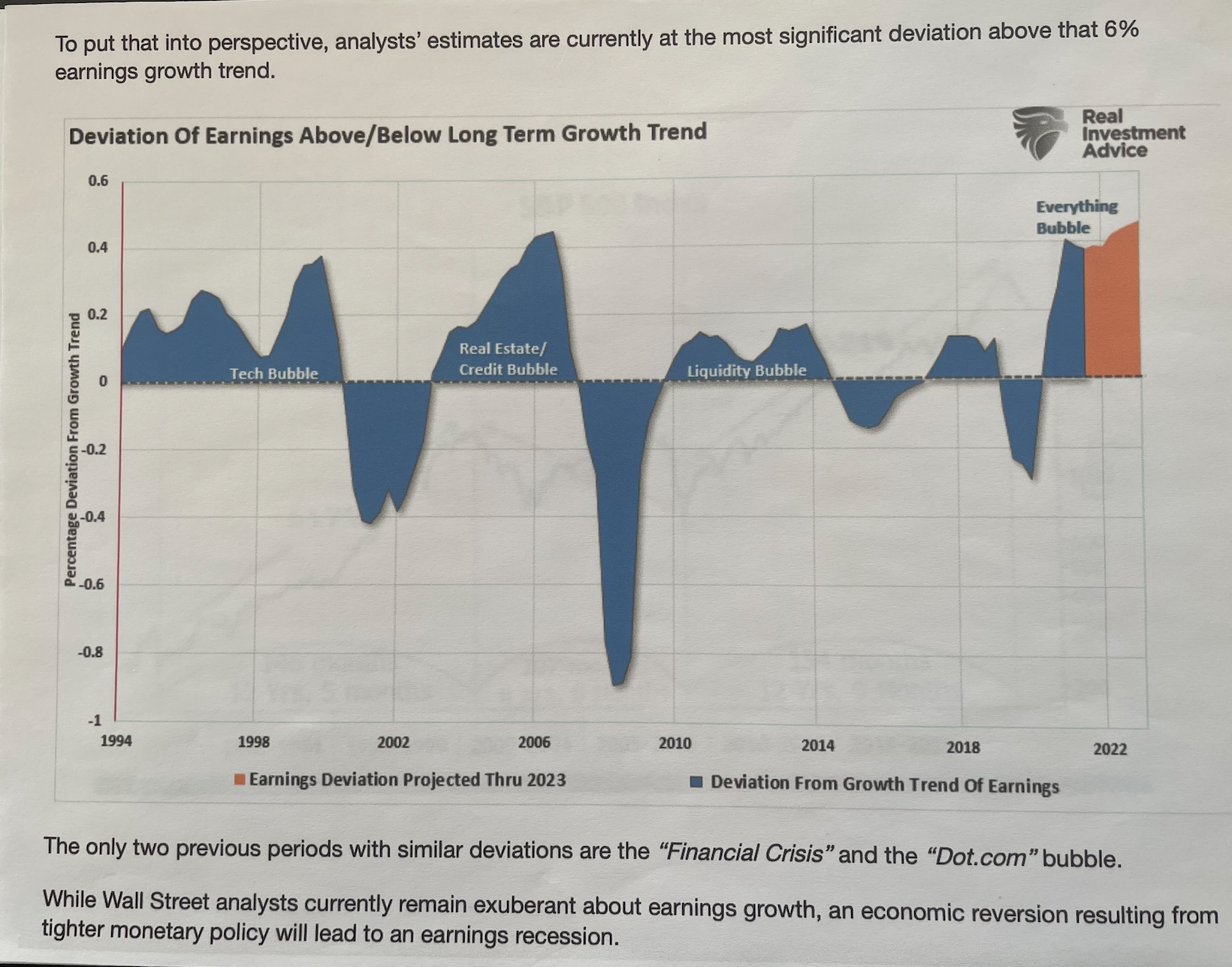 Deviation of Earnings Above/Below Long Term Growth Trend
